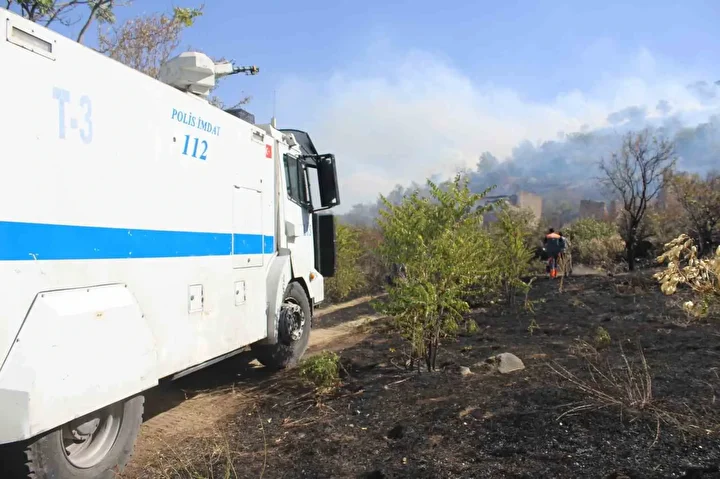 İl Emniyet Müdürlüğü’ne bağlı TOMA araçları da takviye olarak yangını söndürme çalışmalarına katılırken, ekipler alevlerin villalara ulaşmaması için yoğun çaba sarf etti.