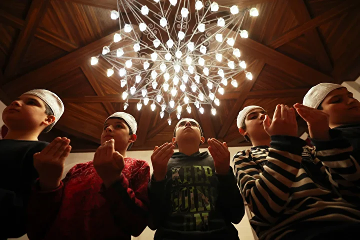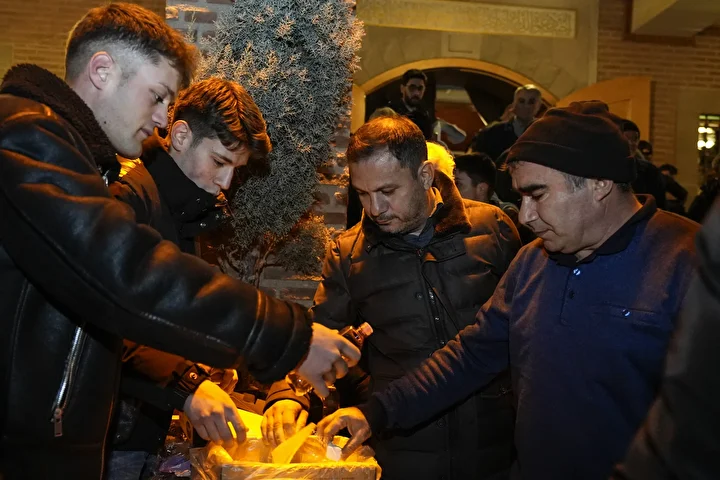 Akşam namazının ardından camilerde toplanan kişiler Kur’an-ı Kerim okunmasıyla başlayan programda, ilahiler eşliğinde dualar etti.