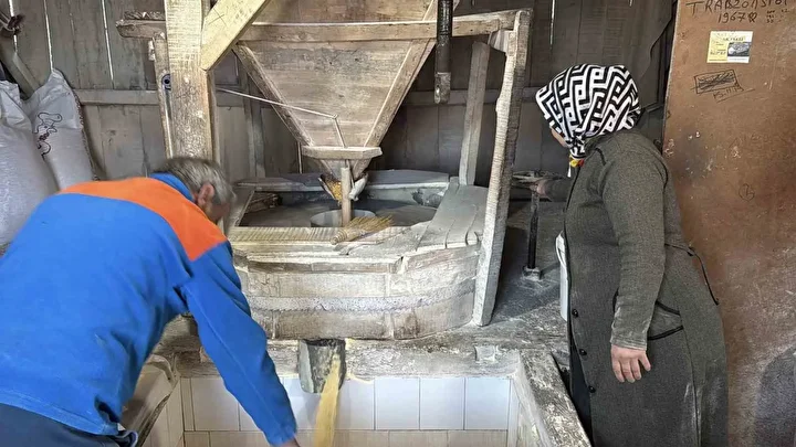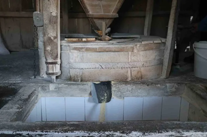 Değirmendere Mahallesi’nde bulunan tarihi yapıda, 3 kilometre mesafeden su kanallarıyla getirilen suyun gücüyle dönen dev taşların arasında mısır ve buğday geleneksel yöntemlerle öğütülüyor. Fabrikasyon üretime direnerek doğallığını koruyan değirmende, unun kalitesini artırmak için yaklaşık 300 kilogram ağırlığındaki taşlara 3 ayda bir el işçiliğiyle bakım yapılıyor.