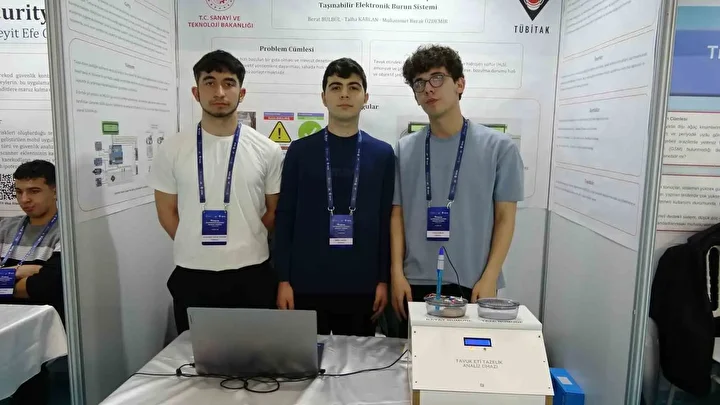 Öğrenci Berat Bülbül ise, “Gıda zehirlenmesini önlemek amacıyla arkadaşlarımızla birlikte bir proje geliştirdik. Her yıl artan gıda zehirlenmelerini düşürmeyi, maliyeti düşük ve hızlı sonuç veren bir yöntemle çözmeyi hedefliyoruz” ifadelerini kullandı.