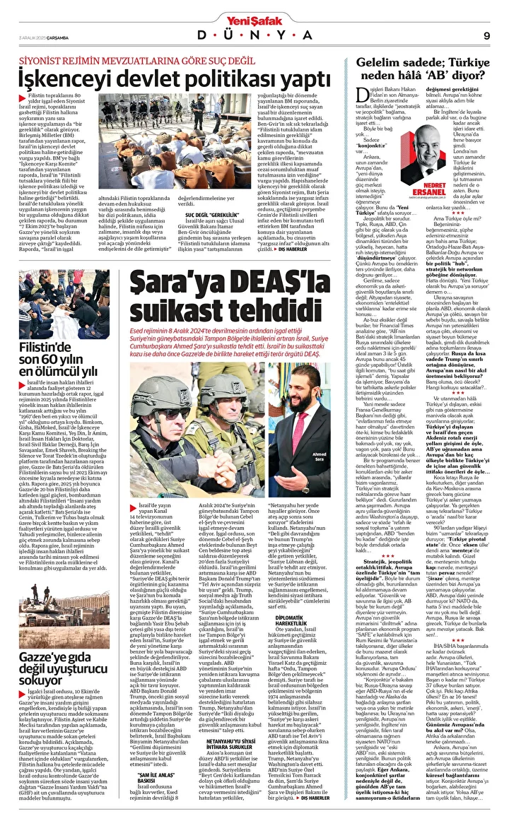 Yeni Şafak Gazetesi’nin 03 Aralık 2025 tarihli birinci sayfasında yer alan manşet ve haberler…