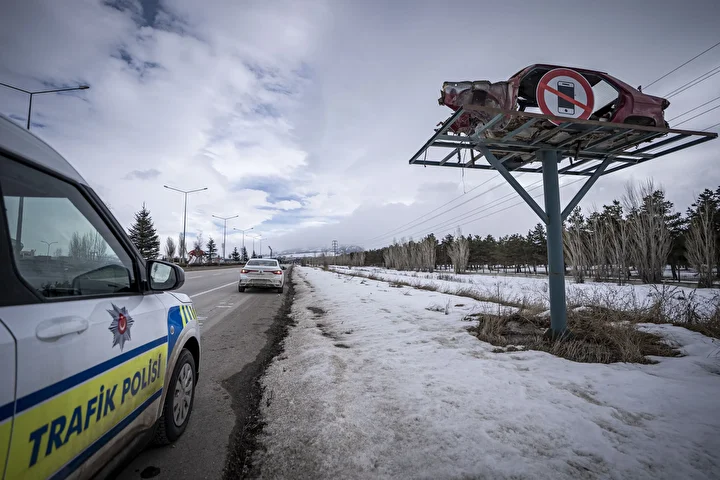 İl Emniyet Müdürlüğü Trafik Şubesi ekiplerinin yaklaşık iki buçuk yıl önce başlattığı farkındalık çalışması kapsamında, kazalar sonucu hurdaya ayrılan araçlar, Kars-Erzincan karayolu Kayapa mevkisi ile E-80 kara yolu kenarına yerleştirildi.