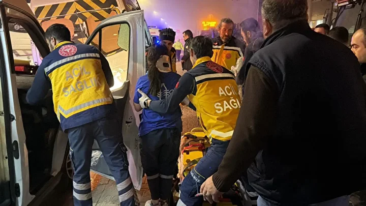 Çevredekilerin ihbarı üzerine kaza yerine sağlık ve polis ekipleri sevk edildi. Servis minibüsünde yaralanan Ö.K., A.Ç., T.A., N.F., Z.Y., Ü.E., L.T., H.Y. ve N.A., ambulanslarla kentteki hastanelere kaldırıldı.
