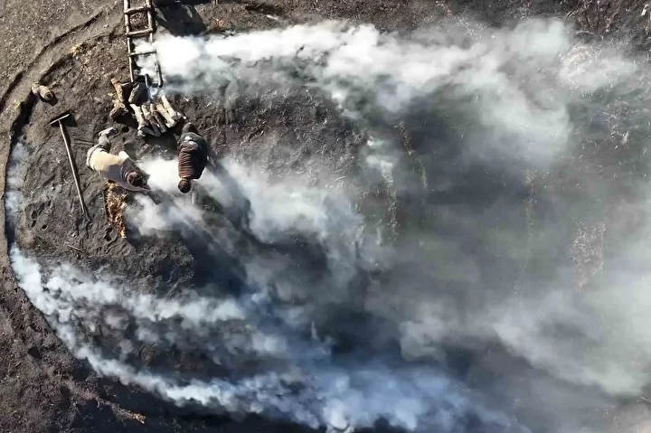 Ocaklarda nöbet tutmanın öneminden bahseden İbrahim Ertekin ise, “Bütün işlemlerden sonra buraya getiriyoruz. Saman ve toprak atıp ateşe veriyoruz. Kömür kül olunca bütün emek boşa gidiyor. Gece gündüz bunun nöbetini tutuyoruz. Eğer tutmazsan bütün emekler boşa gider. O telaş sayesinde bu emekler oluyor” diye konuştu.