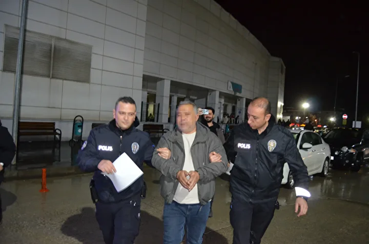 Gözaltına alınan cinayet şüphelisi, sağlık kontrolü için hastaneye getirildi.