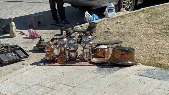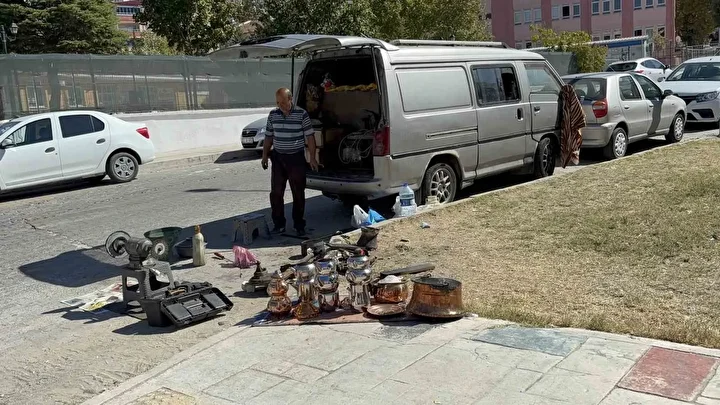 53 yaşındaki kalay ustası Muzaffer Okan ile 49 yaşındaki eşi Hatice Okan, panelvan araçlarıyla köy köy, mahalle mahalle gezerek mesleklerini sürdürmeye devam ediyor.
