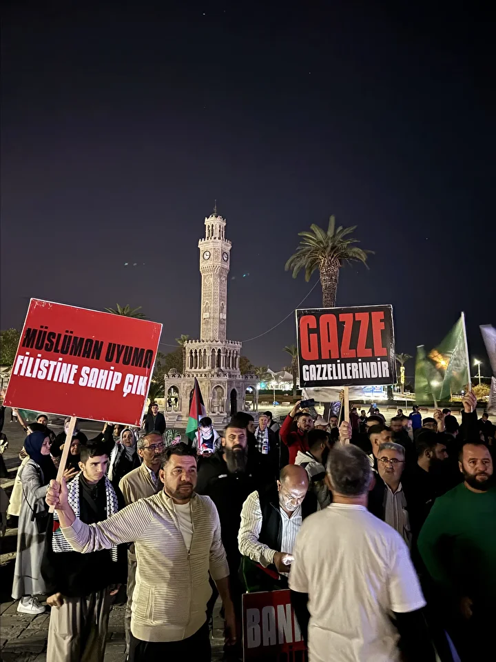 İzmir’de toplanan çok sayıda kişi, ablukayı kırmak ve insani yardım ulaştırmak amacıyla Gazze’ye doğru yol alan Küresel Sumud Filosu’na İsrail tarafından yapılan saldırılara tepki gösterildi.