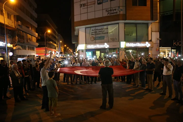 Hatay’da, İsrail ablukasını kırmak ve insani yardım ulaştırmak amacıyla Gazze’ye doğru yol alan Küresel Sumud Filosu’na yapılan saldırıya tepki gösterildi. İskenderun ilçesi Savaş Mahallesi’nde toplanan grup, Türk ve Filistin bayrakları taşıdı, İsrail’e tepki gösterdi.
