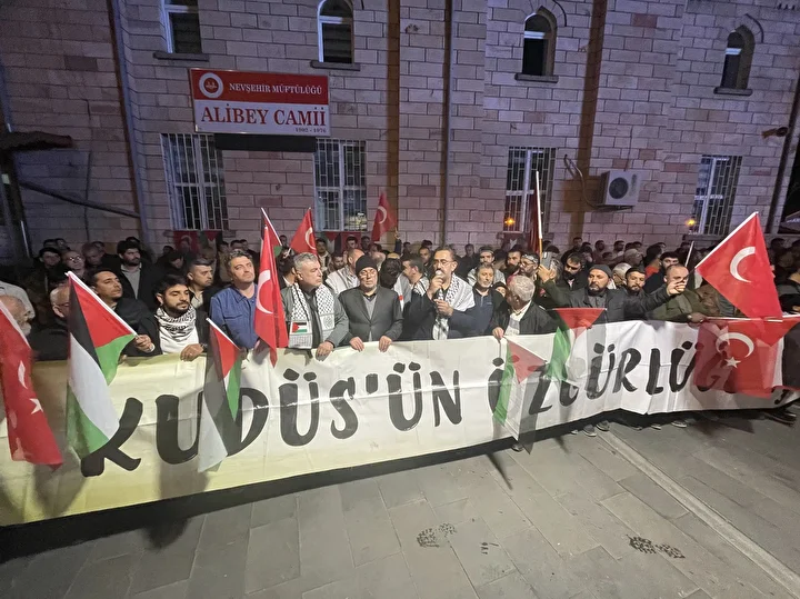 Nevşehir’de, ablukayı kırmak ve insani yardım ulaştırmak amacıyla Gazze’ye doğru yol alan Küresel Sumud Filosu’na İsrail tarafından yapılan saldırılara tepki gösterildi.