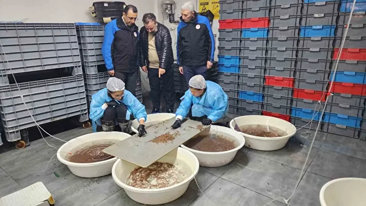 Balıkçılık ve Su Ürünleri Genel Müdürü Turgay Türkyılmaz, Çanakkale İl Tarım ve Orman Müdürü Ergün Demirhan, Daire Başkanı İlhan Üze, İl ve İlçe Müdürlüğü İdarecileri, deniz solucanı türleri yetiştiriciliği tesisinde incelemelerde bulundu.