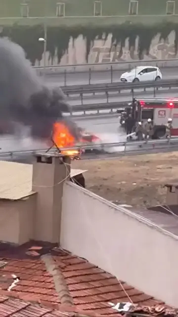 Alevler itfaiye ekiplerinin müdahalesiyle söndürüldü. Otomobilin alev alev yandığı anlar çevredekiler tarafından cep telefonu ile görüntülendi.