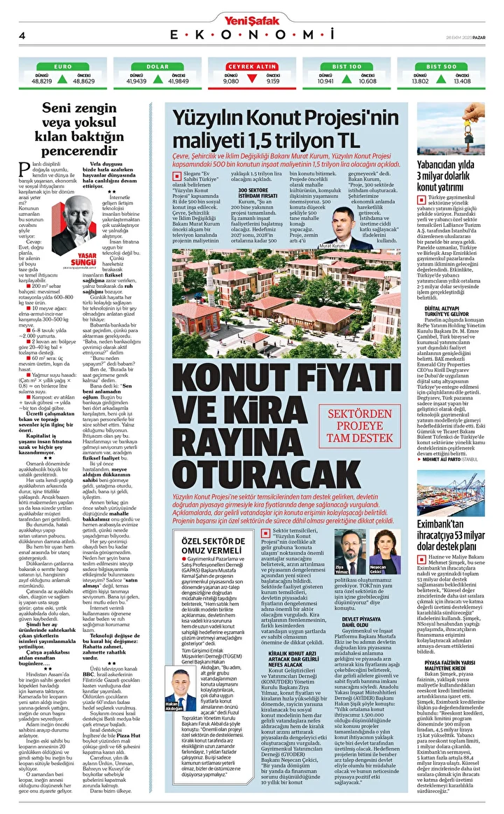 Yeni Şafak Gazetesi’nin 26 Ekim 2025 tarihli birinci sayfasında yer alan manşet ve haberler… 500 bin sosyal konuta tam destek Cumhurbaşkanı Erdoğan’ın açıkladığı 81 ilde 500 bin konut seferberliğine sektör temsilcilerinden tam destek geldi …