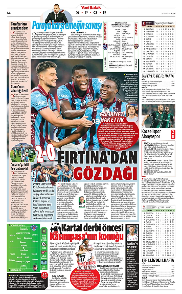 Trendyol Süper Lig’in 10. haftasında sahasında Eyüpspor’u net bir skorla mağlup eden Trabzonspor üst üste 4. maçını da kazandı. Augusto ve Oluai ile sonuca giden bordo-mavili takım, gelecek hafta oynanacak Galatasaray maçı öncesi rakibine gözdağı verdi.