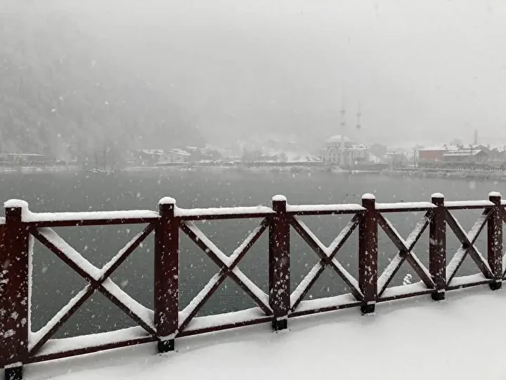 Kartpostallık görüntülerin ortaya çıktığı Uzungöl’de, yoğun kar yağışı doğayla iç içe eşsiz manzaralar oluşturdu. Göl çevresi, ormanlık alanlar ve dağ siluetleri tamamen beyaz örtüyle kaplanırken, bölge kış turizmi açısından da yeniden ilgi odağı haline geldi.