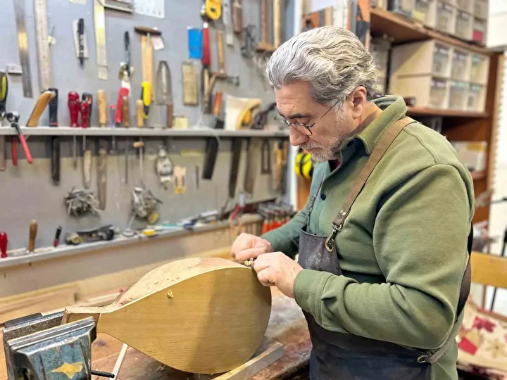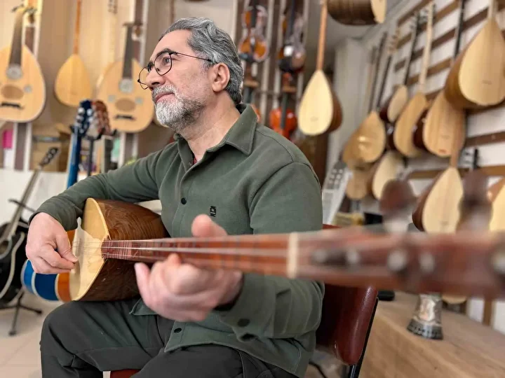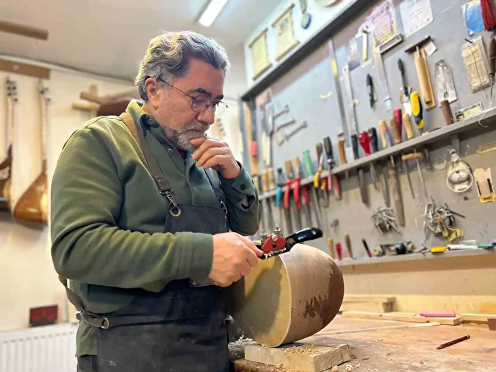 Bağlama ustası Tevhid Topal, 1979 yılında babasıyla birlikte Erzurum’da bağlama yapımına başladıklarını belirtti.
