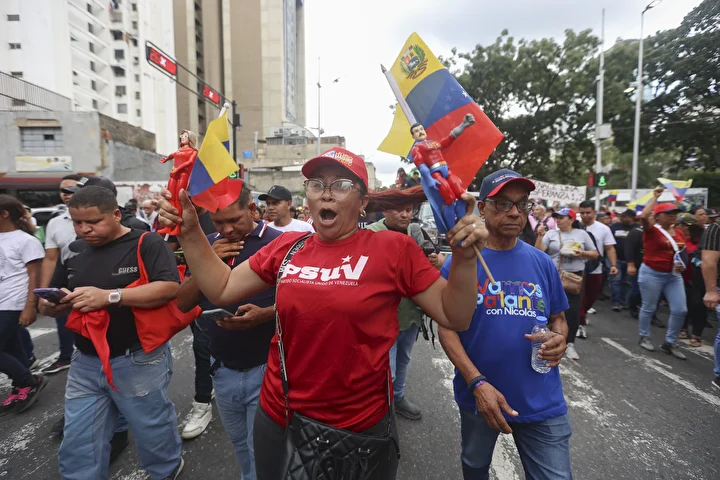 Öte yandan, başkent Caracas’ın en büyük caddelerinde yürüyüş gerçekleştiren Venezuela Birleşik Sosyalist Partisi (PSUV) üyeleri ellerinde Venezuela bayrakları ve Maduro posterleriyle ABD’nin Karayipler bölgesindeki askeri hareketliliğini kınayıcı sloganlar attı.