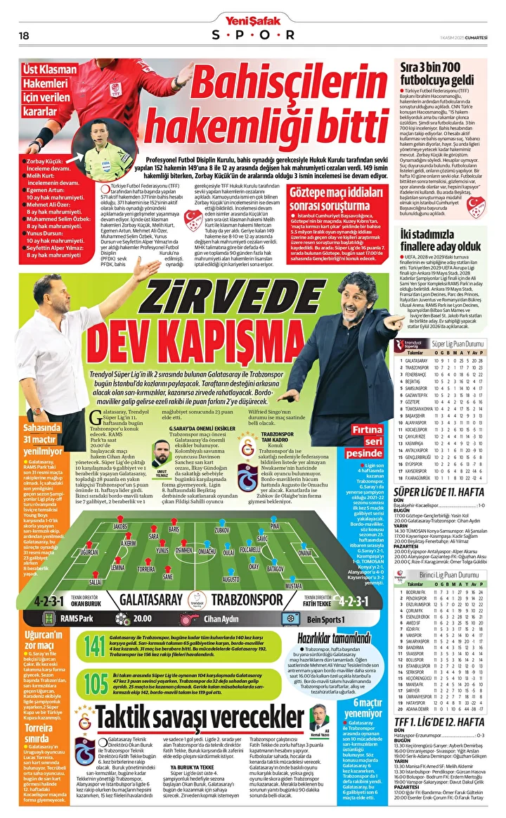 Yeni Şafak Gazetesi’nin 01 Kasım 2025 tarihli birinci sayfasında yer alan manşet ve haberler… Zirvede dev kapışma Trendyol Süper Lig’in ilk 2 sırasında bulunan Galatasaray ile Trabzonspor bugün İstanbul’da kozlarını paylaşacak. Taraftarın …