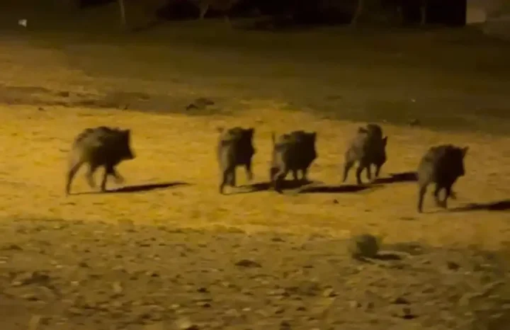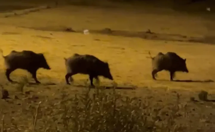 Gözlemlerini aktaran Candan Demir, “Köyden geçerken domuz sürüsünü gördük. Biz de o anları hemen kayıt altına aldık. Biraz bekledikten sonra domuz sürüsü gece karanlığa karışarak gözden kayboldu” dedi.